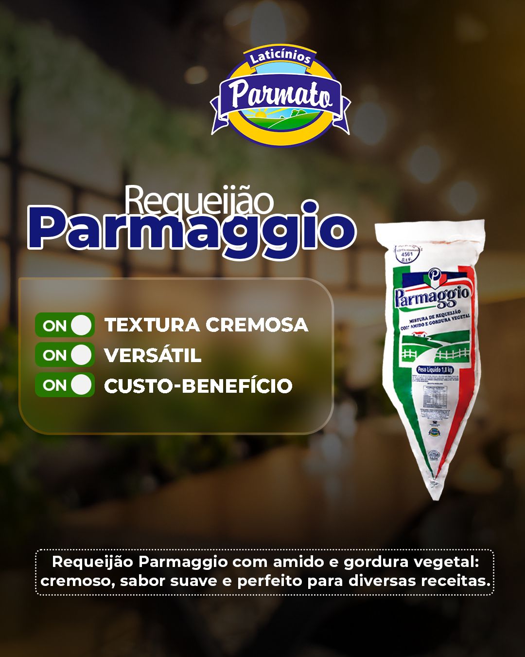 O LATICÍNIOS PARMATO não mede esforços para ser uma das melhores empresas nacionais de fabricação de queijos e requeijão. Estamos comprometidos com o que fazemos e fazemos com perseverança, sinceridade e determinação.
